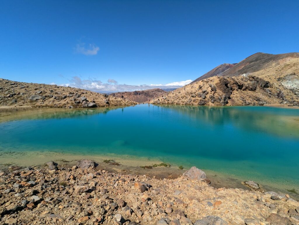 C’est parti pour la plus connue des randonnée : le Tongariro crossing! Que c’est beau de se retrouver seuls au monde au milieu de ces volcans ! La randonnée est assez longue mais pas très difficile. C’est splendide, la couleur des lacs et des cratères mais il ya énormement de monde. On arrive malgré tout à prendre quelques photos tout seul Retour dans l’après midi au camp (on aura mis 6h30 au total au lieu des 8 h prévues) Petit milkshake avant le traditionnel spa puis une pétanque pour savoir qui prépare les dîners des prochains jours ( j’ai perdu donc c’est moi ! )